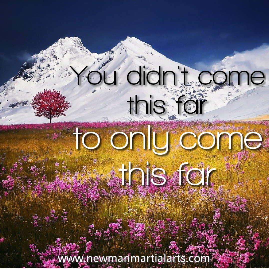 #MondayMotivation Posted byNewman Martial Arts20th Jun 2022Posted inMonday MotivationTags:Monday Motivation, Motivational Quote “You didn’t come this far, to only come this far.” #MondayMotivation Share this: Click to share on X (Opens in new window) X Click to share on Facebook (Opens in new window) Facebook Click to share on Pinterest (Opens in new window) Pinterest Like Loading... Related