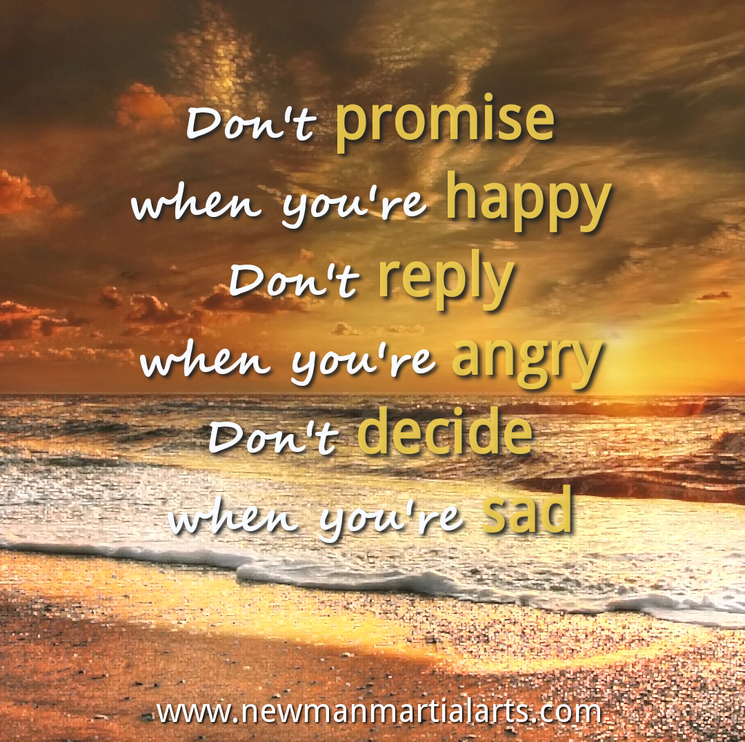 “Don’t promise when you’re happy. Don’t reply when you’re angry. Don’t decide when you’re sad.”