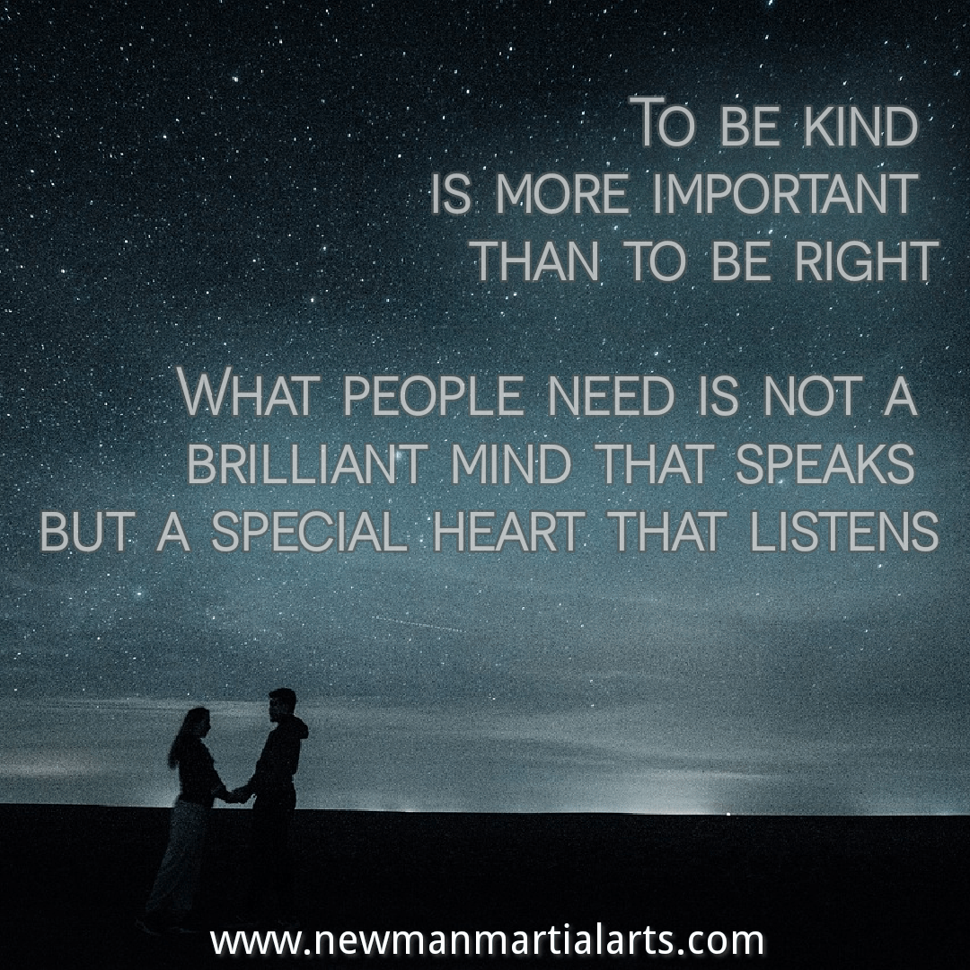 “To be kind is more important than to be right. What people need is not a brilliant mind that speaks but a special heart that listens.”
