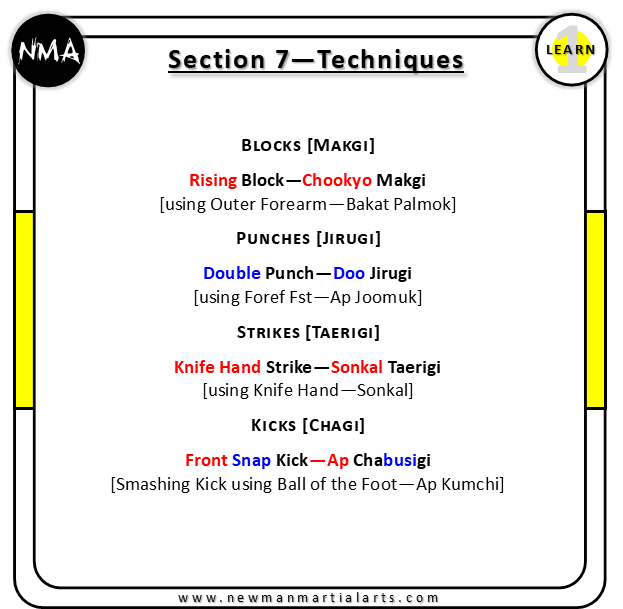 Prefer text flashcards? Have a look at the 9th Kup Text Flashcards.