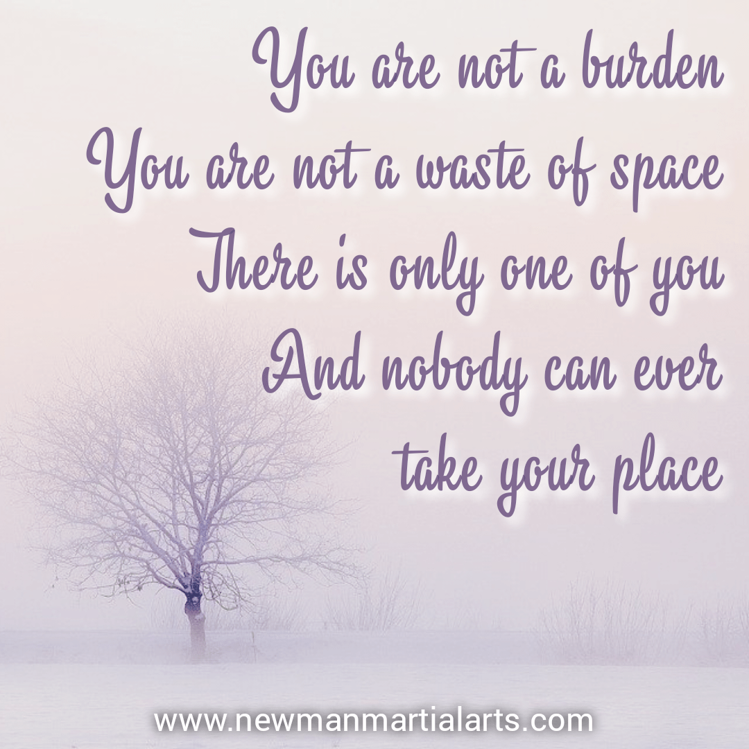 “You are not a burden. You are not a waste of space. There is only one of you and nobody can ever take your place.”